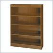 Safco WorkSpace 48""H Four Shelf Reinforced Square-Edge Bookcase in Medium Oak This medium 4-shelf square edge bookcase is equally practical for home and office and features three reinforced adjustable shelves as well as lower fixed shelf. Features: Bookshelf is crafted from wood veneers Bookshelf has a medium oak wood finish Bookshelf features reinforced full 3/4"" shelves and sides to provide strength and stability One piece matching veneer back panel adds to the appearance All shelves are 11-3/4"" deep Shelves adjust in 1-1/4"" increments Standard shelves hold up to 100 lbs All cases are 36""W x 12""D Shelf count includes bottom of bookcase Optional Trim Kit available Easy assembly with quick-lock fasteners Specifications: Overall dimensions: 48"" H x 36"" W x 12"" D Weight: 74 lb