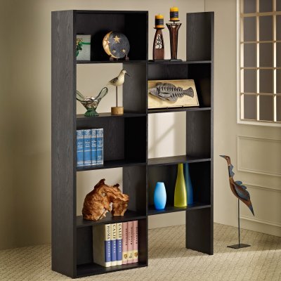 Shop for Bookcases from BookCasesGalore.com! The Luciana Expandable Modern Bookcase is just what you need to make sure that your most treasured tomes don't have to languish in boxes anymore. A great choice for smaller rooms and tighter spaces this space-efficient unit which has five open and closed shelves expands to offer four additional open shelves so you can have all the book space you need to showcase your favorites. With so much space you'll find that you even have space left over to show off your collectibles artifacts or houseplants.Sturdily crafted from wood and wood veneers this bookcase is designed for years of enjoyment. Its clean lines sleek look and matte black finish make an impact in any setting. The perfect storage solution for all your cherished books from Aristotle to Zola this expandable bookcase is a must-have for every book lover.